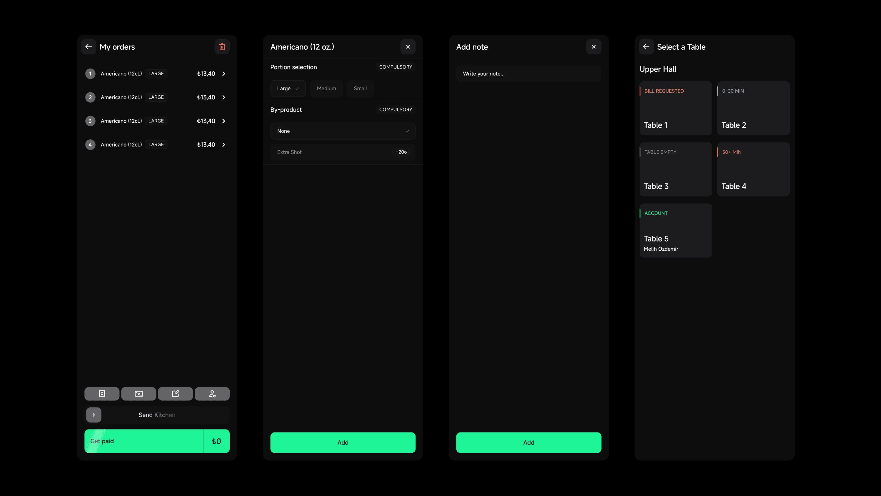 For POSA, we enhanced the overall product design and created a fast, mobile-first ordering experience that allows staff to take orders quickly and efficiently on the floor. Beyond mobile operations, we developed advanced remote reporting tools that enable business owners to monitor their venue in real time from anywhere, including a live operational overview showing which tables are occupied, guest activity details, and performance insights. We also designed a branch-based system architecture, allowing all these operations to be managed across multiple locations with centralized control. Throughout the process, we built a structured design system and delivered the product as high-fidelity prototypes, ensuring consistency, scalability, and a smooth transition into development.